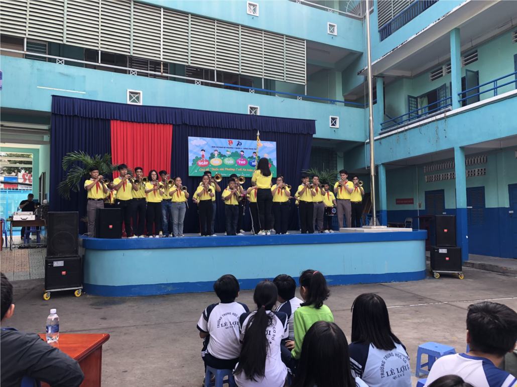Đội trống kèn của nhà thiếu nhi biểu diễn tại ngày hội