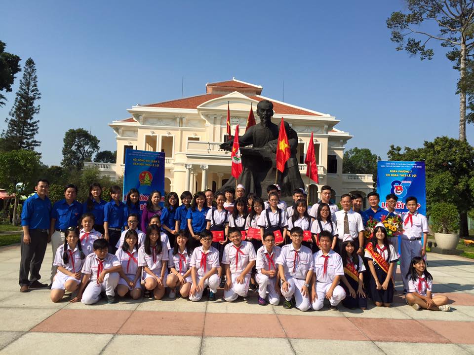 Các em Đội viên và Đoàn viên mới được kết nạp chụp hình lưu niệm cùng Đảng ủy phường 7, Quận Đoàn 3, Đoàn phường 7 và Chi bộ - BGH trường THCS Lê Lợi