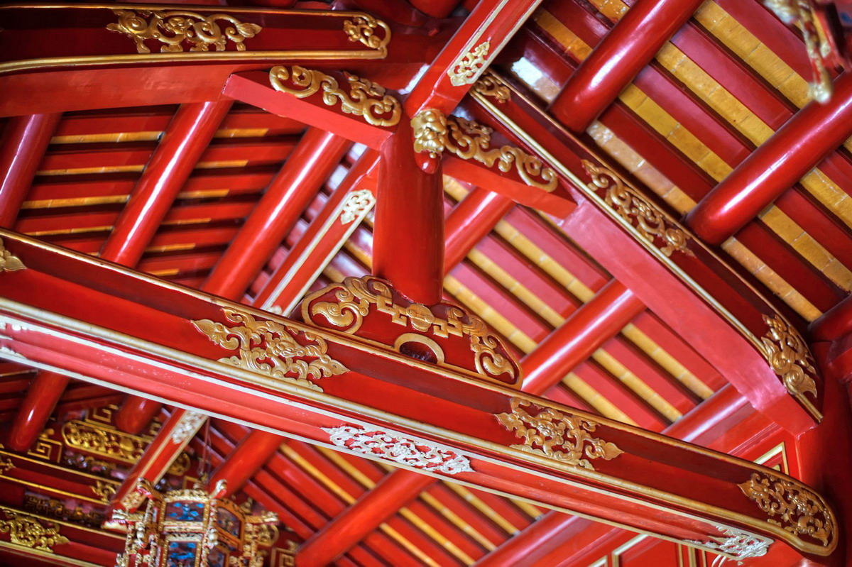 Cận cảnh kết cấu gỗ sơn son thiếp vàng, chạm khắc tinh xảo của Dực lang 3B.
