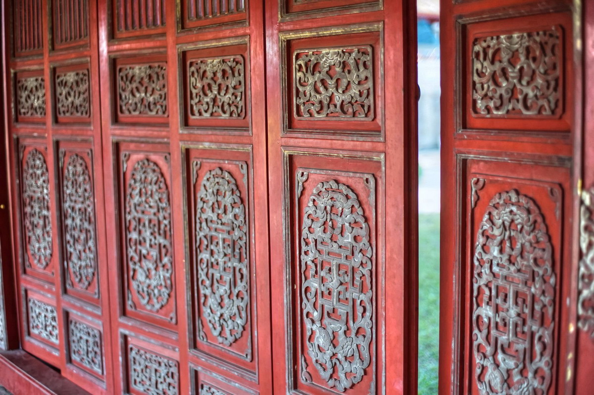 Chi tiết chạm khắc trên một bộ cửa của trường lang.