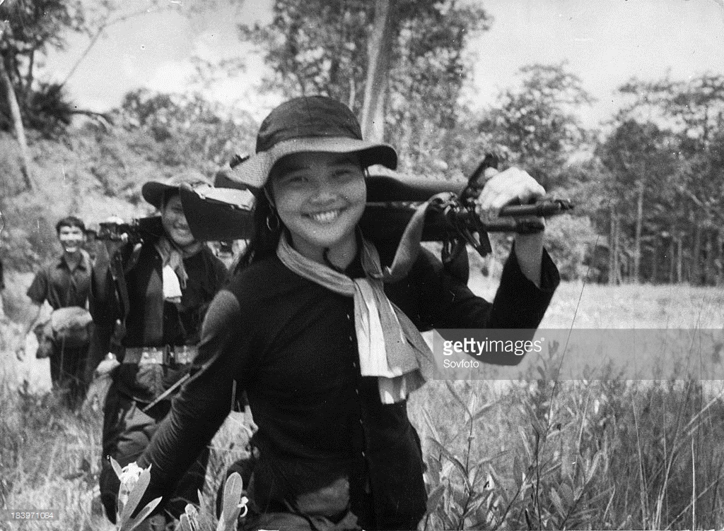 Các nữ du kích Giải phóng trở về căn cứ sau một nhiệm vụ thành công trong cuộc kháng chiến chống Mỹ ở miền Nam năm 1966. Ảnh: Sovfoto – GettyImages.