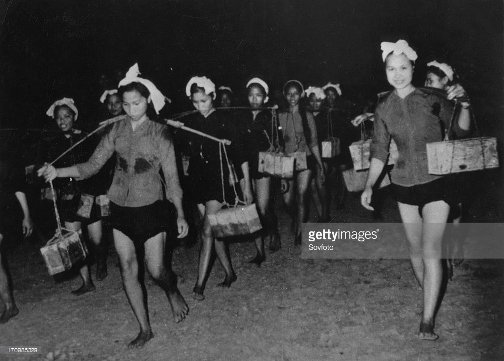 Một đơn vị tiếp vận nữ đưa hàng tiếp tế vào Nam trong một buổi đêm ở đường Trường Sơn,1968. Ảnh: Sovfoto – GettyImages.