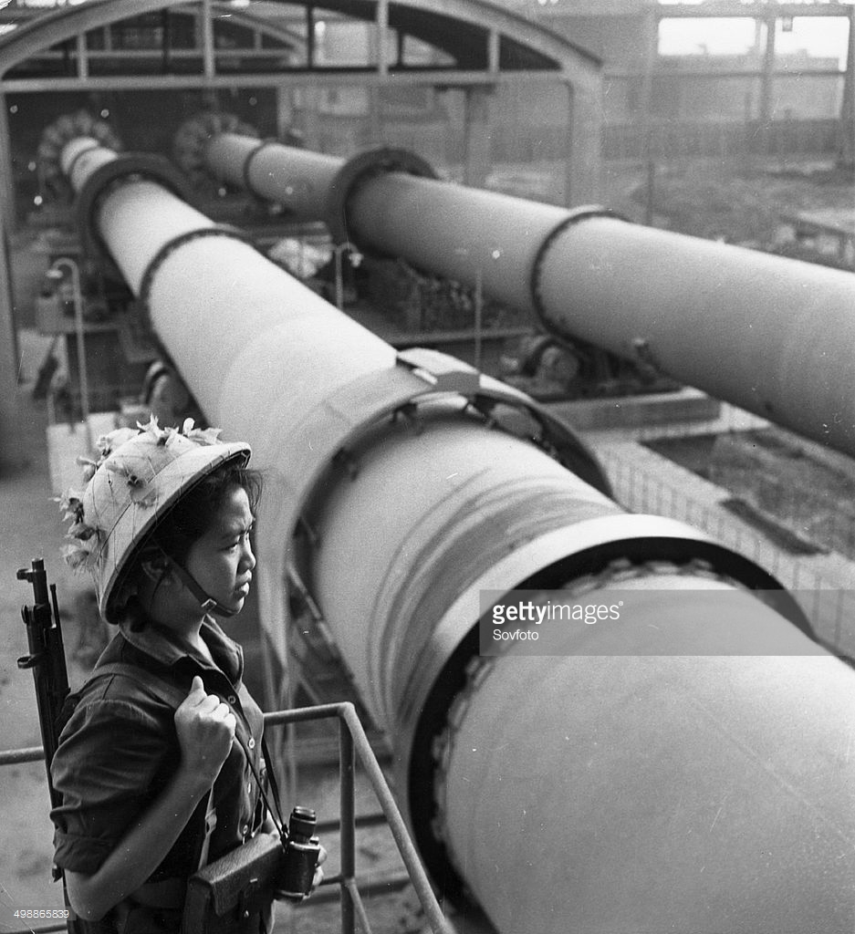 Cô công nhân Nguyễn Thi Nhung, một chiến sĩ của đội tự vệ nhà máy xi măng Hải Phòng trong một ca trực chiến đấu, năm 1966. Ảnh: Sovfoto – GettyImages.