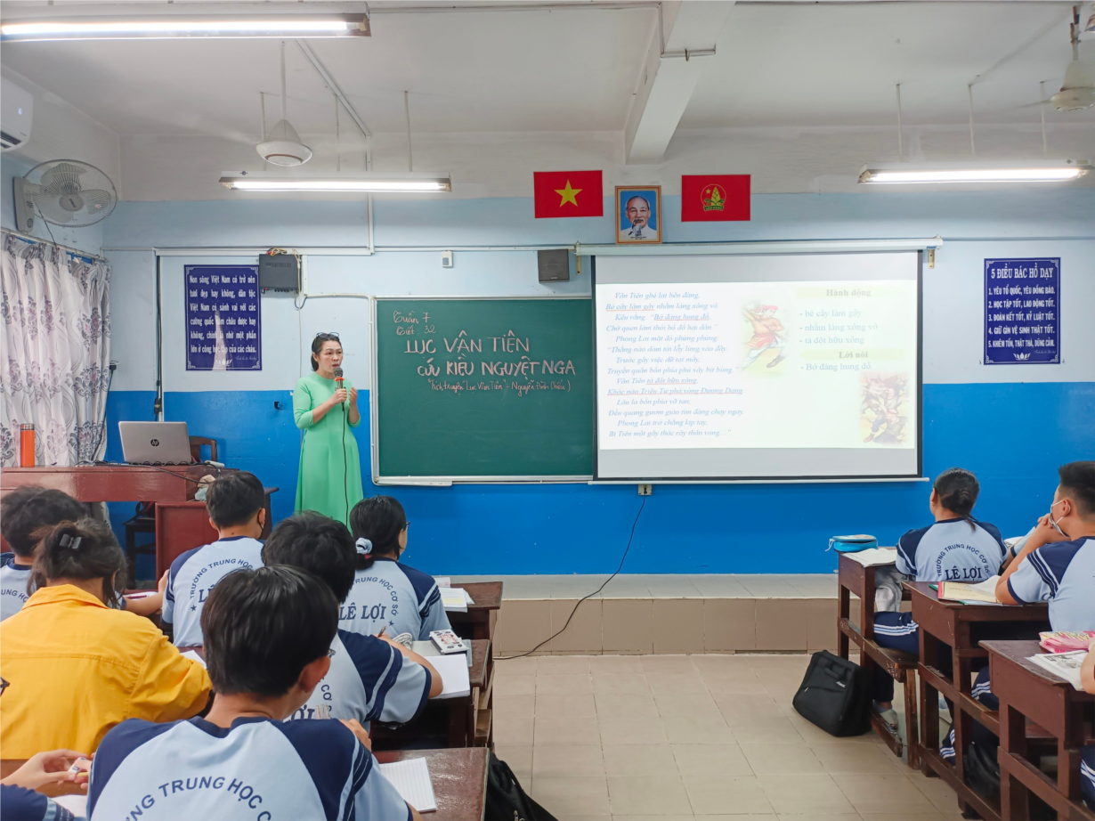 Với Kế hoạch bài dạy được xây dựng khoa học, tiến trình tổ chức các hoạt động học tập theo hướng tiệm cận chương trình phổ thông 2018, việc lựa chọn các phương pháp - kĩ thuật dạy học phù hợp với đối tượng học sinh; cô Trang đã hướng dẫn học sinh khám phá vẻ đẹp của người anh hùng trung đại Lục Vân Tiên và nhân vật Kiều Nguyệt Nga. Tiết học đã làm nổi bật hình tượng người anh hùng trung đại với tinh thần trượng nghĩa, tấm lòng nhân hậu, từ tâm; trọng nghĩa khinh tài thật đáng quý. Qua đó, cô Trang đã kết nối với thực tiễn đời sống để giúp học sinh thấy được nét đẹp ấy vẫn lan tỏa giữa đời thường.